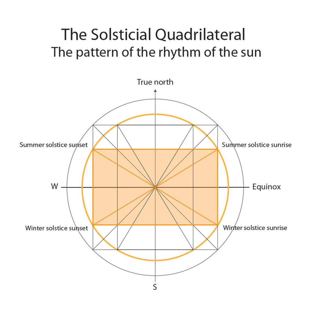 Solar Sacred Geometry began with the shamans of ancient times. These first builders keenly watched the sun, moon, stars and planets. Over time, they realized when you connect the solstice sunrises and sunsets to the earth, something magical happens, a rectangular form arises that emanates harmony.