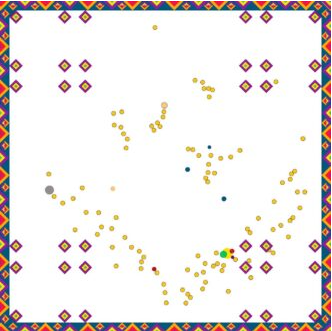 The circular dots are the stars, the planets, and the constellations. The squares are the solar mandala points.