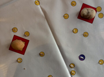 We found river stones and cut them so they could stand up for this Birth Mandala